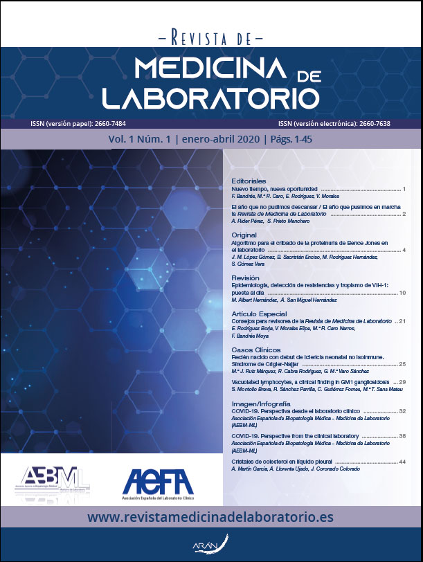 La Revista de Medicina de Laboratorio, es el órgano de expresión de las sociedades AEFA (Asociación Española del Laboratorio Clínico) y AEBM-ML (Asociación Española de Biopatología Médica – Medicina de Laboratorio). Publica artículos sin cargo para los autores en formato open access relacionados con la química clínica y la medicina de laboratorio, especialmente trabajos enfocados en el desarrollo, validación y verificación de pruebas de laboratorio de interés clínico, así como estudios relacionados con organización del laboratorio, pre y post-analítica, automatización y control de calidad.